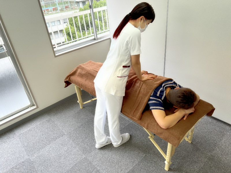 ベッドに横になるかたちで全身行います。お客様の症状に合わせて辛いところを重点的に行いますので、「デスクワークで肩こりが…」「日々の営業で足が…」などございましたら、お気軽にお申し付けください。おひとりお一人に合わせてしっかりとご対応させていただきます。