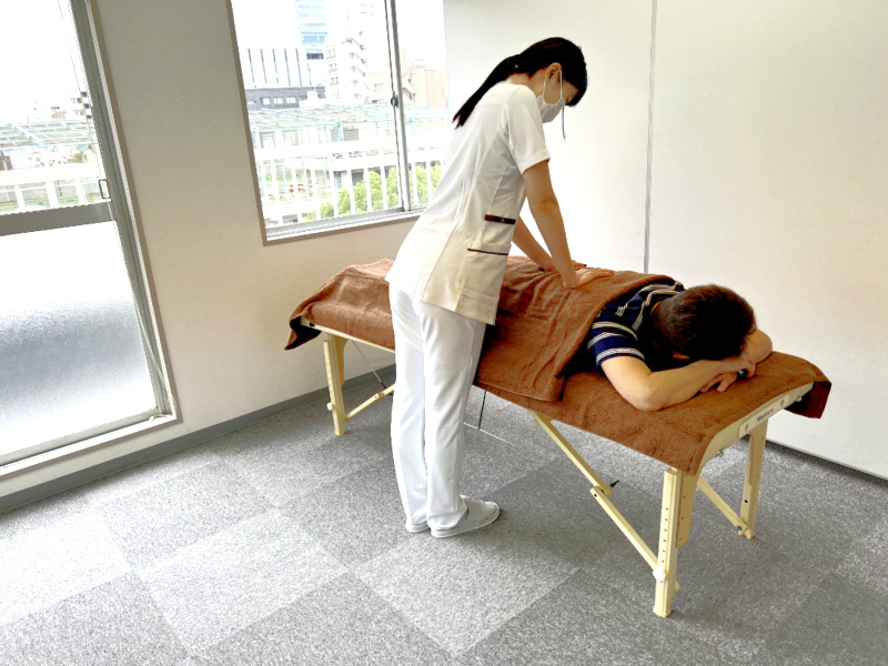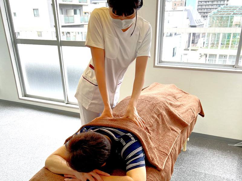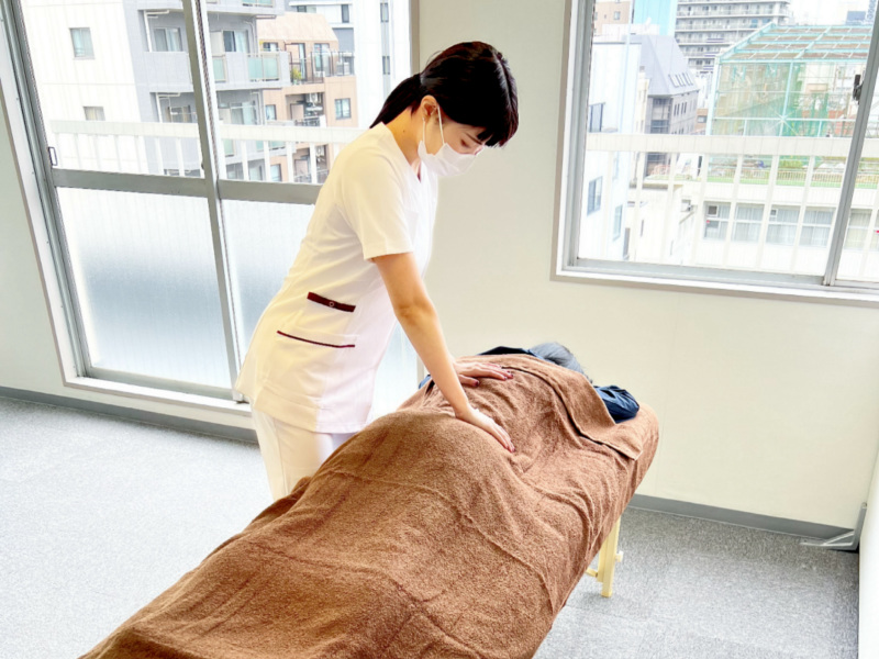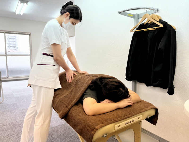 ベッドに横になるかたちで全身行います。お客様の症状に合わせて辛いところを重点的に行いますので、「デスクワークで肩こりが…」「日々の営業で足が…」などございましたら、お気軽にお申し付けください。おひとりお一人に合わせてしっかりとご対応させていただきます。